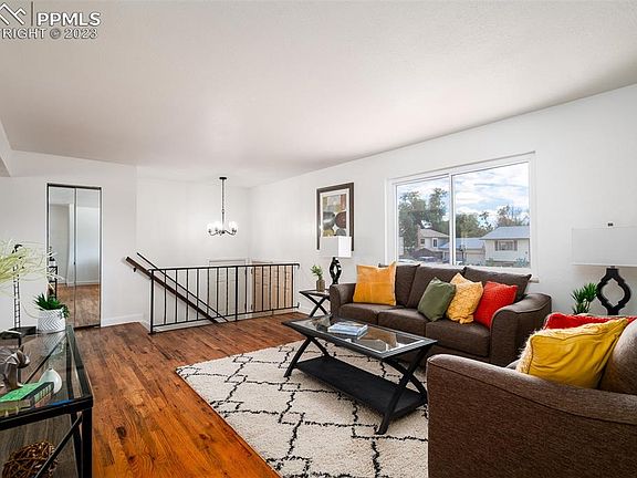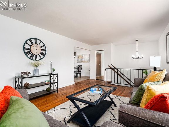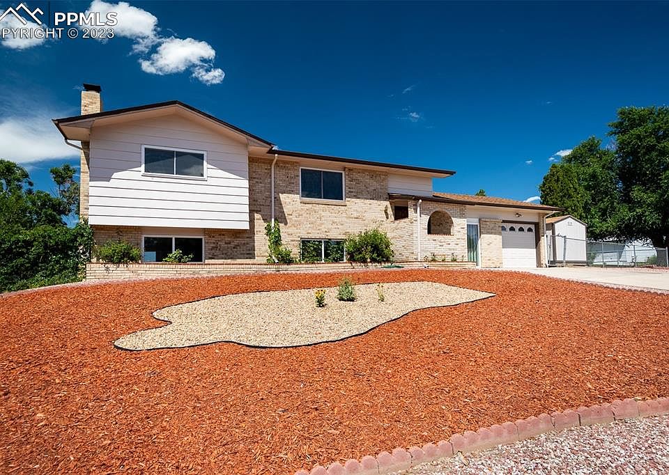 If you've been looking for a charming 4 bedroom, 3 bathroom split level home on a corner lot in Widefield, your search may be over. Upper level has beautiful hardwood floors that extend from the living room into both bedrooms; remodeled full bathroom; upgraded kitchen with granite countertops, stainless steel appliances, and ample cabinet space; dining area has a sliding glass door that leads you to the oversized covered deck in the backyard. The lower level has been recently carpeted; rec room has a grand fireplace and vintage dry bar; two more bedrooms and a bathroom complete the space. On the main level you'll find a unique flex space that is plumbed for a sink, has a half-bath, and is accessible through a sliding glass door on the front of the home. Perfect for home business, hairdresser, or even a gym. Brand NEW roof, central AC, garage with opener, Tuff Shed, large corner lot, and walking distance to King Elementary and just minutes to parks, shopping, and dining. Contact your real estate agent for more information and a private showing.