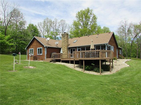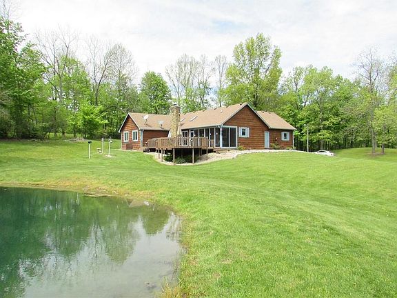 PICTURESQUE HILLTOP setting. You will love all the features this property offers starting with the Spring Fed/Stocked Pond with a view of Woods, Pasture & Picnic area w/Firepit. A Pole Barn situated away from the house could be just what you want for possible workshop, horses or play arena? Don't miss the Rock Garden and bonus outdoor storage barn. Inside you will find authentic Hardwood and Tile flooring, Large Great Room Stone Fireplace, Bay Window & Skylight. Updated kitchen w/custom tile breakfast bar and newer appliances. You will love the View from every angle especially from the Screen Porch and Large Deck. You must see for yourself and enjoy the smell of country living. Yet still close to shopping, schools, entertainment and more.