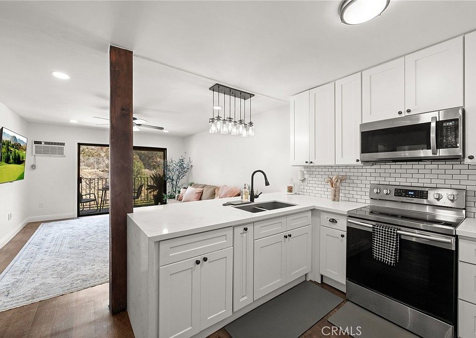 Sparkling poolModern upgradesPrivate balconyWaterfall quartz countertopBbq and picnic areasSleek cabinetryNew flooring