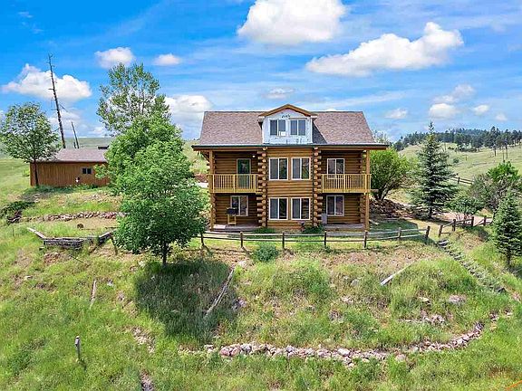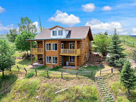 Mountain Top Retreat! Own your own slice of the Black Hills on this private acreage! Located just minuets from Rapid City off of South Canyon Road; you will love this hill top retreat boarding forest service. This log home has 3 levels of spacious living. The main level has an open concept with views in every direction. You will love gazing out the windows of the 25x23' living room or off of the 2 decks. The views will never disappoint! The main floor also has the kitchen, dinning area, pantry, half bath and laundry room. Two additional decks are off of this level, making 4 decks total. The entire upstairs is the Master Suite along with it's own private deck. The walkout lower level has 2 bedrooms, family room, office and bathroom. The oversized garage will house your vehicles and toys. Many updates have been made to the home including new roof, exterior paint, all new decks, flooring, & interior paint. Views in every direction make this a perfect vacation home or year round living.