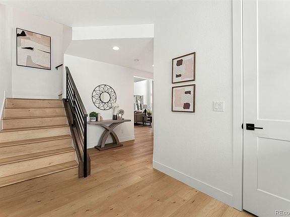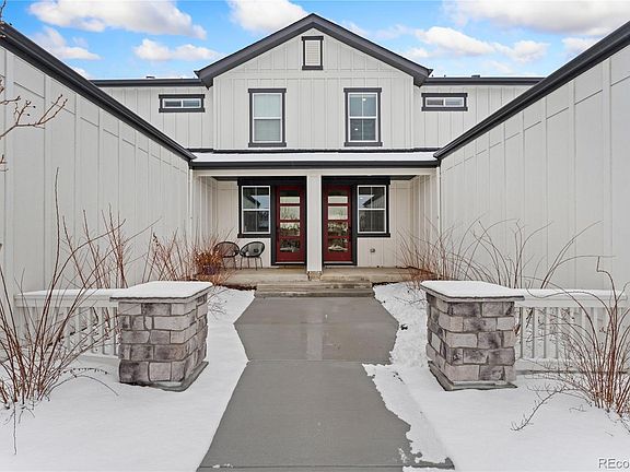 Welcome to modern luxury living in Arvada's sought-after Carson Farms! Ideally situated in a highly walkable area, just moments away from the historic Old Towne, adjacent to walking trails and a delightful park right across the street. This 2022 paired home, nestled on a south-facing cul-de-sac, is a masterpiece of contemporary design and quality upgrades. Step inside to discover hardwood floors that grace the entire space, leading you to a chef-worthy kitchen equipped with premier stainless appliances, including a convenient air fryer in the oven. The 5-burner gas range and center eat-in island make this kitchen a dream for culinary enthusiasts. The open living room boasts 2-story ceilings with abundant natural light, and a built-in wall fireplace, creates a cozy and stylish ambiance. Slide open the glass doors from the dining room to reveal a spacious covered patio and a private backyard. The main level hosts a bedroom with en-suite full bath. Venture upstairs to find two additional bedrooms, including a spacious primary retreat, providing a tranquil haven. The upper-level laundry room adds practicality to your daily routine. Rest easy knowing the property was inspected in the spring of 2023 before the builder warranty expiration, ensuring peace of mind for the new owner. Your attached garage boasts an epoxy floor upgrade, providing not only a sleek appearance but also enhanced resilience against daily wear and tear. Enjoy the convenience of low HOA dues in a tight-knit community, with regular neighborhood gatherings for football, holidays, and birthday celebrations, ensuring a warm and welcoming environment for all residents. This move-in ready gem is poised to offer a lifestyle of comfort, convenience, and modern elegance. Don't miss the opportunity to make it yours!