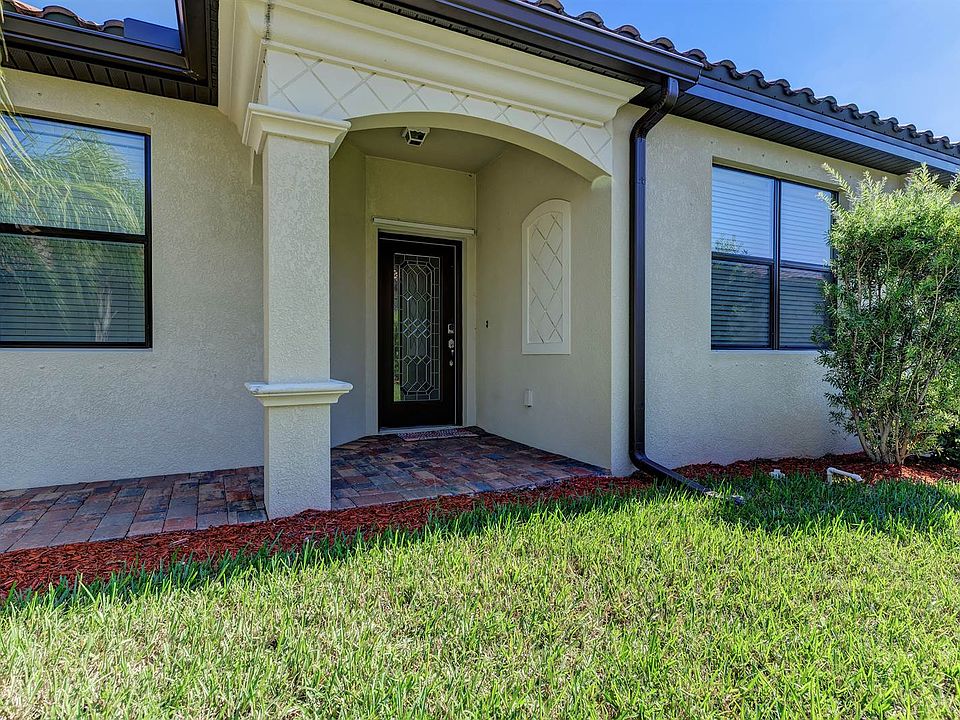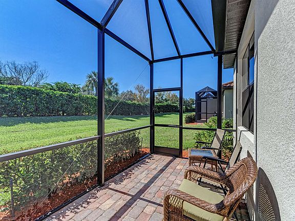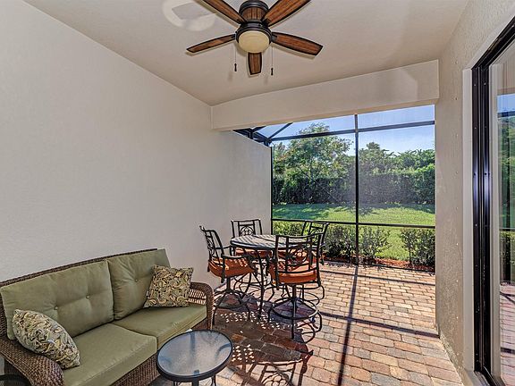 Better than new! This immaculately kept villa in the resort lifestyle community of River Strand is being offered turnkey furnished. This home boasts porcelain tile flooring throughout the main living areas, a private extended caged in lanai, and upgraded ceiling fans and lighting. The kitchen comes equipped with stainless steel appliances, 42" cabinets and granite countertops. Furnishings are all very stylish and high quality, and are in like-new condition. This villa is located close to the larger of the 2 gyms in River Strand. River Strand is a golfing community with a beautiful 27 hole course. The community features include a Tuscan style clubhouse complete with a tiki bar and restaurant, 2 resort style pools, 7 additional satellite pools, 8 Har-Tru tennis courts, pickleball courts, basketball courts, a billiards room, a yoga studio, a 24 hour manned security gate, and much more! River Strand is conveniently located near to I-75, shopping, dining, and entertainment.