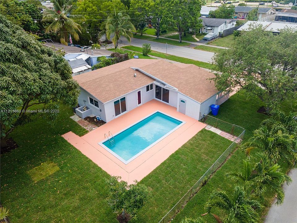 Price adjustment to Sell. Beautiful corner lot property with POOL ready to move in. Three bedrooms and two baths, modern porcelain floor. There are many upgrades; the new kitchen features custom cabinets, a quartz countertop, and SS appliances. New Impact doors and windows and a new High-efficiency A/C unit. New roof, fully remodeled baths.The back yard designed for complete enjoyment with a beautiful pool, sprinklers system with new pomp, different tropical trees, and fresh grass. It is conveniently located near the Beach, with Great Dining, Hard Rock Guitar, Hard Rock Stadium and entertainment.
