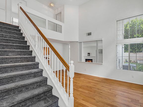 This lovely Hopetown West Venture home features 3 bedrooms, 2 ½ baths with 1659 Sq. Ft. which has beautiful views of the Santa Susana Mountains. Walk into the open concept which has direct access to everything. You have a downstairs half-bath. Your family room features a lovely gas fireplace. The kitchen features granite counters, wood cabinets, recessed and under cabinet lighting. The adjacent dining area features a slider leading to the rear yard with a concrete patio, plenty grass, plants and fruit trees. Upstairs are you will find your 3 bedrooms and 2 full baths. The two secondary bedrooms are both spacious, one having open ceiling and a view. The secondary bathroom has granite counters, tub with overhead shower. A large Master Suite. The Master bath is bright with lots of windows as well as granite counters, dual basin vanity, a soaking tub and a separate glass enclosed shower, a toilet room and a large walk-in closet. This home features wood and tile flooring, ceiling fans, recessed lights, newer HVAC and water heater. Downstairs you have a private laundry room which leads to your spacious two car garage with plenty of storage. This Lovely home is in the Historic Corriganville area of east Simi Valley and surrounded by plenty of places to explore!