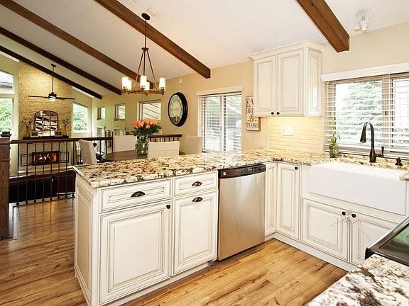 Imagine being greeted by large plank flooring and vaulted ceilings into your warm and bright home. The kitchen is ideally located in the center of this gem and boasts slab granite counters, stainless appliances, new soft close and pull out cabinets, and designer lighting with under cabinet lighting. New French doors invite you to the large tiered trex deck with plenty of room for enjoying and entertaining. The private yard sides the amazing trail system and even comes complete with master garden beds. The family room is crowned with an amazing stone fireplace with huge wood mantle. Upstairs you are welcomed by two large secondary bedrooms one with a walk in closet. The master retreat has his/her closets and a newly remodeled bath. The main level has another bedroom or study.All of this situated ideally at thetop of the cul-de-sac in this highlydesired neighborhood with toprated Cherry Creek schools.Within 5 minutes you can be atyour destination and enjoyingyour time!!