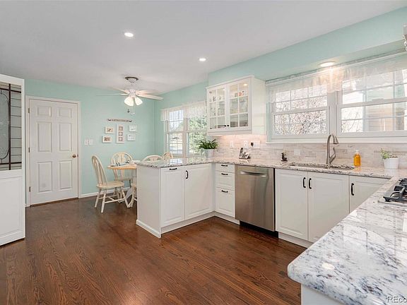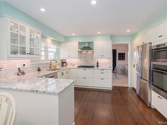 Welcome to this fabulously located townhome nestled in serene Homestead Village II, one of Centennial’s best kept secrets. This community offers the best of home ownership with no exterior maintenance as the HOA takes care of all your outdoor upkeep. If you are looking for comprehensive main floor living then this is the one for you – find a spacious primary suite, laundry, and indoor/outdoor entertainment spaces all on the home’s main level. The newly renovated kitchen features modern upgrades including bright white cabinetry, light granite countertops, and stainless-steel appliances. The main-floor primary suite offers a luxurious newly renovated en suite bath, providing a spa-like retreat for the homeowners with dual vanities, a stand-up tile shower, and custom walk-in closet. As an added bonus, you’ll find a spacious loft complete with a bedroom, full bathroom, and hangout space perfect for reading your favorite book or enjoying a movie. Downstairs in the basement you will find endless opportunities for hosting guests with a full conforming bedroom, three-quarter bathroom, rec-room, office, and workshop. Enjoy spectacular sunsets with covered deck views of the front range. With three decks, you’ll always have a space to enjoy the beautiful Colorado weather. Don’t miss the oversized attached two-car garage complete with built-in storage! Several major systems have been recently replaced including the air conditioner, air purifier, and humidifier. The community offers a pool and clubhouse in addition to green spaces throughout. Close to Kaiser Permanente, King Soopers, and miles of beautiful trails/green spaces. Enjoy shopping and dining just minutes away at I-25 and Arapahoe!