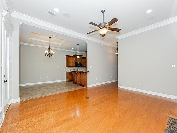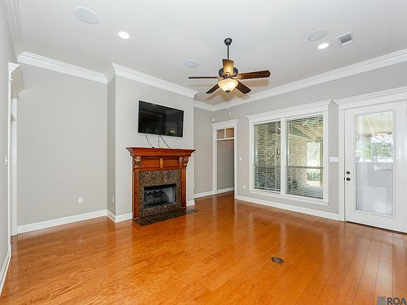 Stunning cul-de-sac lot with access to the neighboring pond in Sugar Mill Plantation subdivision. This gorgeous 3 BR 2 BA split floor plan home with welcoming curb appeal features so many beautiful amenities. The builders spared no expense with amenities in this home. Kitchen features stainless steel appliances, granite countertops, eat-in raised bar with intricately carved woodwork, electric cooktop, walk-in pantry, self-cleaning oven, cypress cabinets with a section featuring beautiful lighting inside. Wall of windows on back of home bringing in natural lighting and picturesque views of the sunset each evening. Primary bedroom features triple tray ceilings and an en-suite bath with separate shower, water closet, granite countertops with double vanities and undermounted sinks, garden/soaking/jetted tub and a large walk-in closet. The ceiling are varied in height up to 12-13 ft in some areas. There is crown molding throughout the home. The living room features a gas, ventless, fireplace framed with a beautifully carved cypress mantle. There is a separate room designed with built-ins as an office. Exterior of the home features gutters and a large covered patio with a gas drop and cable outlet for the utmost in entertaining or relaxing. The double gate across the driveway open to an extended concrete driveway for increased privacy and parking. There is a 2 car attached, covered, garage. New roof being installed. Convenient to local retail, commercial businesses and restaurants. Stress free commutes on the west side of the river.