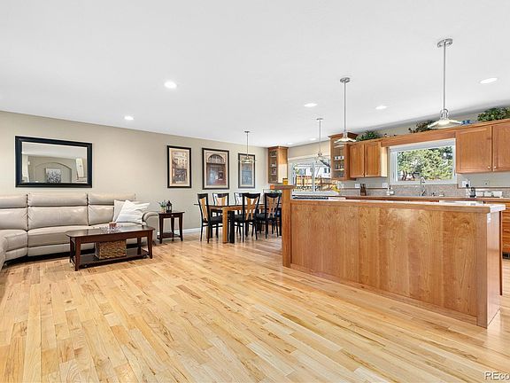 Nestled in unincorporated Douglas County, this beautiful Parker home offers the advantage of lower taxes while sitting on a spacious .33-acre lot with serene open space directly across the street. A welcoming front porch sets the stage for this charming home, inviting you into the open and airy main living area, where gorgeous wood flooring seamlessly connects the living room, dining area, and kitchen. The well-appointed kitchen features stainless steel appliances, rich cabinetry, a picturesque window over the sink that fills the space with natural light, and direct access to the sunny back patio, making it a perfect spot for hosting family and friends.