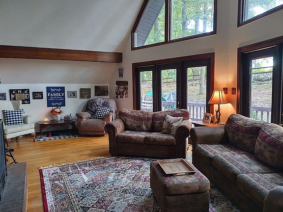 *Currently Pending* By appointment only, no showings without pre-approval letter. If working with a realtor, we will give buyers agent 2%. Welcome Home To This 3 Bedroom/2 Bathroom property In Liberty. Features open concept throughout the home. A brand new kitchen installed October 2020, granite countertops, new oven, new dishwasher. Laundry area on main level behind closet in kitchen. Beautiful cathedral ceiling in the large and inviting living room, with wood burning fireplace. Large dining room. Master bedroom on main level adjacent to a full bathroom. Upstairs another full bathroom and loft, 2 bedrooms and extra storage space. Don't Miss The Huge finished Basement Downstairs with custom crafted bar made from African Mackory wood, complete with keg & tap! Large area for man cave or family room and 2 additional rooms for den/office/guest rooms. New roof 2015, New finished Basement 2015, New hot Water Heater 2017, New carpets 2018, New Paint 2018, New remodel bathroom cedar & tile 2016, New shower & toilet and floors upstairs bathroom 2019, Newly stained deck 2019, new kitchen 2020. Peaceful 2 Acre lot with ATV trail. Surrounded By Trees, this enchanting chalet is close to everything in the triad. 11.1 miles to Greensboro Wal-Mart, Lowe's, Cracker Barrel, Zaxbys. 25 min to Piedmont International Airport, 30 min to Asheboro Zoo. 3 hours to the Ocean. A picture of privacy & convenience. We have loved this home, and our wonderful neighbors. New job causes the move. Call Joe 3366538842