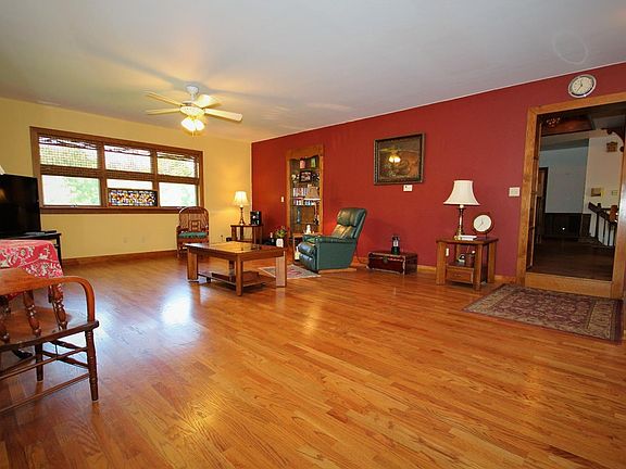4000+ SF home on 25 amazing acres of rolling hills w/creek, water fall, bridge & wishing well. Great room w/wood burning stove open to lg kitchen w/custom cabinets & Corian counter. Private study w/built-ins. 3 beds & 3 baths on main flr. 2nd floor offers 1400SF of space incl family rm, rec room, hobby room & more! 64x28 pole barn. 45x22 workshop.
