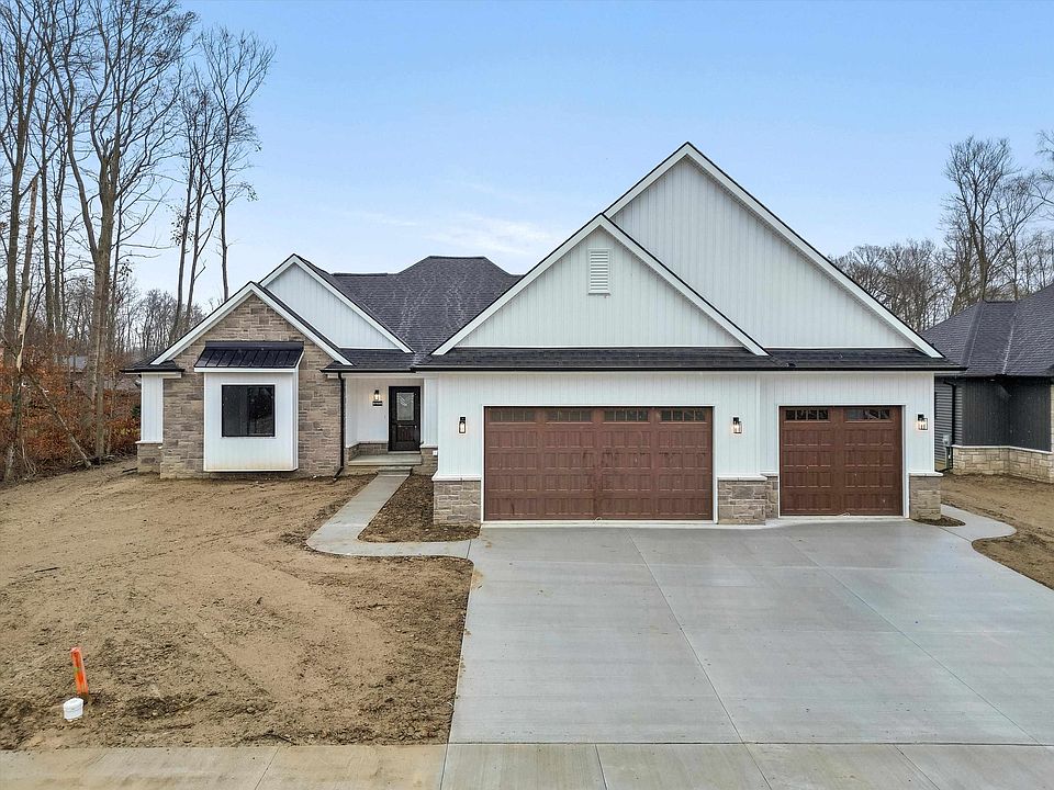 Brand new, immediate occupancy luxury ranch home. Home has 3 bedrooms and 2.5 baths. A 34 x 22 3-Car Garage, all on a 90 x 138 lot. There is nothing builder grade in this home; Andersen Windows, Kraftmaid Solid Wood Cabinetry, Quartz Countertops, and the list goes on and on. When you walk in the front door you are greeted with an electric fireplace, a beautiful coffered ceiling and plenty of room for furniture. The Kitchen has Modern Farmhouse feel with beautiful custom wood Beams and matching floating shelves. The oversized island with Seating Space and a Prep Sink for the chef in the household. Kitchen Aid Appliances include Gas Range, Wall Oven/Microwave Combo Unit giving you Dual Ovens and Dishwasher. The butlers pantry has Cabinetry and a Wine Cooler. Downstairs, the finished basement with egress window is prepped for an addition bathroom. The Primary Bedroom has Soaring Ceiling with custom beams and 2 closets; leads to the bath with a soaker tub and tiled shower.
