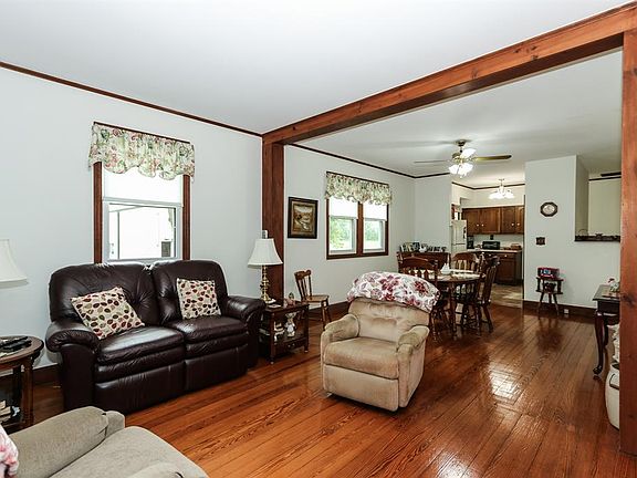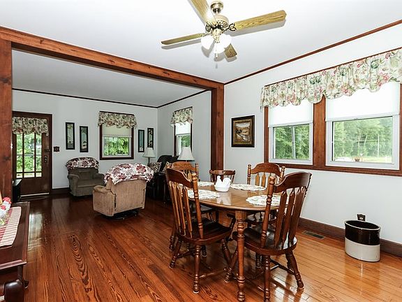 What a charmer w/2 bdrms, 2 full baths sitting on 1.24 acres. Full bsmt w/potential for more bdrms. All kit appl stay + washer/dryer in newer added mudrm. Pretty wd & ceramic floors Jack 'n' Jill Master bath to bdrm & leads into hall. Lg 30x63 barn includes air comp & generator. Deck wraps from side to back + cov front porch. Picturesque property!