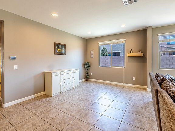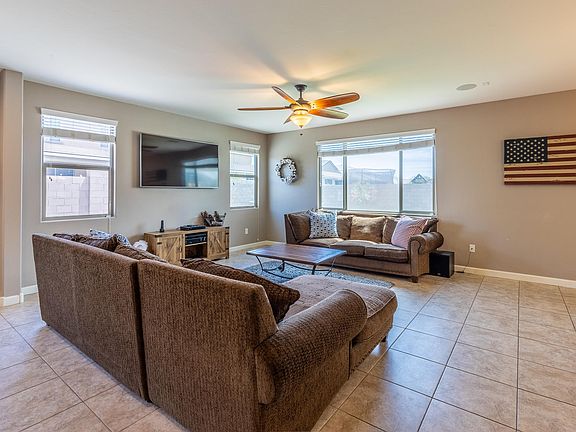 Gorgeous, like-new home ready for your family to move in + start living! 5 bedroom floor plan. Bedroom + full bath on main level for guests/2nd office/multi-generational living. Extended cabinet package in the kitchen, undermount single basin sink, add'l backsplash accent windows for natural light. Gas range. In-ceiling speakers including back patio for outdoor leisure. Rain showerhead in master, large bright closet w/mountain views. 4'' baseboards throughout. 17'' natural stone tile. Tons of upgrades! Large great room floor plan w/island kitchen+tons of living space. Choose to have formal dining or casual eat-in w/breakfast bar. Upstairs laundry room w/lower cabinets + utility sink. Backyard landscaped w/artificial grass + concrete pad. Buyer to verify all facts+figures,incl those in MLS.