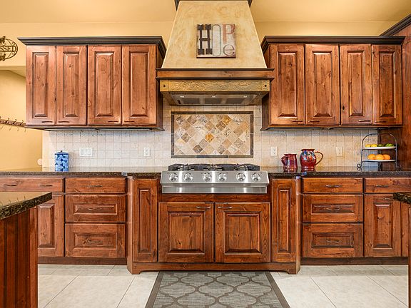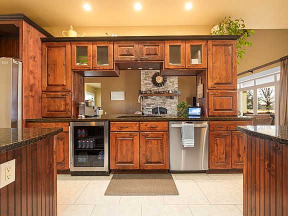 COME HOME TO RIVER'S EDGE! If you're searching for a home that truly stands out, look nofurther! From the moment you step inside, you'll be captivated by the towering rock fireplace that stretches 22-foot to the tongue-and-groovecathedral ceiling. The gourmet kitchen is a chef's dream, featuring granite countertops, two spacious islands, gas cooktop, double ovens, knottyalder cabinets, two dining areas (1 formal and 1 casual), stainless steel appliances, a beverage cooler, and a walk-in pantry. This immaculatelymaintained custom-built home boasts exceptional craftsmanship and exquisite finishes throughout. The luxurious Primary suite includes agenerous walk-in closet with custom built-in storage, a spa-like master bath with a soaking tub, an oversized shower and heated towel bars.