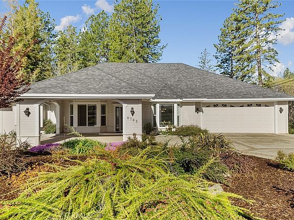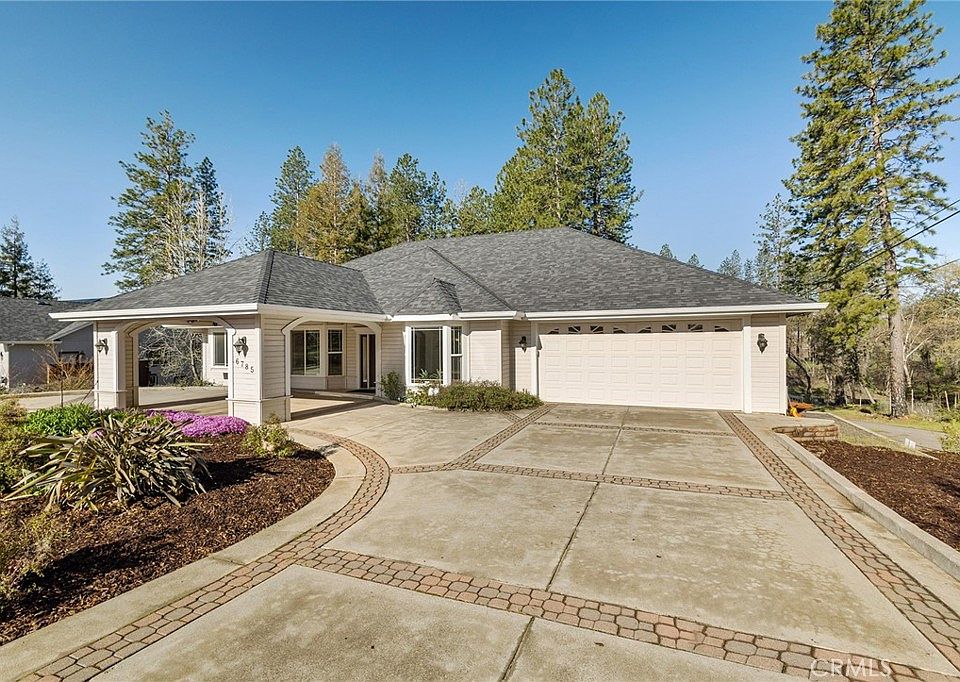 Wonderful home offering over 3300 sq ft on .99 of an acre with peach trees, fenced back yard and so much room for entertaining inside and out. Visit this property and see all it has to offer. Location is wonderful, with only a couple minutes to stores, schools and more. Sellers have done many upgrades to the home, see list attached to listing. Per seller, they have done over $70,000 in up grades. As you approach the property, notice the beautiful circle driveway with lots of brick inlay, giving it a special style of it's own. Within the circle driveway are many easy care but beautiful plants to make you smile. Note the open yet roofed with stylish arches, this large entry with lighting, that makes you feel like you should be met by a valet. The front door is elegant in style with glass on either side. With this open floor plan, you have the room for some serious entertaining with lots of family, or friends. The formal dinning room and den both have bay windows. The den also has built in book case, cupboards and drawers. The living room has a gas fire place, lots of windows for viewing, vaulted ceiling and lighting above the accent shelves. The kitchen offers a skylight, Breakfast bar, quarts counters, newer appliances, an island, loads of storage, a pantry and breakfast nook with access to the upper balcony. Just off the kitchen is an area with more storage. The laundry room offers counter space, hanging rod and storage too. This is a split bedroom floor plan. Master has walk in closet and large bathroom with separate shower, tub, double sinks and long counter. There is also a whole house fan. Down stairs is another living space that would be great for a guest staying with you. It has two large rooms, one with a slider to the lower covered patio and extended large patio area, a bathroom, bedroom and access to the lower one car garage. So a guest could have privacy and come and go separately. There are a couple peach trees and I believe maple and of course our tall Paradise trees in the fenced back yard. There is really so much to see. Call and make an appointment to see this lovely property! By Appointment Only!
