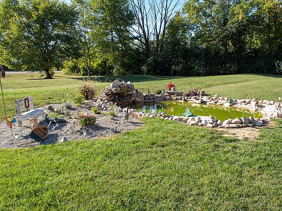 Two plus peaceful acres of relaxation with quick access to I-71. Relax on the front porch, listening to the waterfall splash into the Koi filled pond. Hardwood floors throughout the A Frame Cabin. Master bedroom overlooks the the first floor. All appliances stay, including the water softener. 18' by 24' pole barn with RV covered parking.