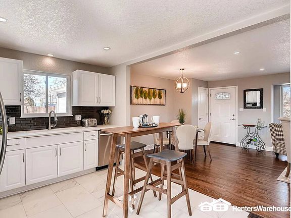 Just blocks from The Streets at Southglenn, this stunning, fully renovated 4 bedroom, 2 bath ranch is situated on a massive lot with over 1/3 acre of land. The open main floor plan boasts beautiful solid hardwood floors, and a gourmet kitchen where any chef would be at ease. The brand new stainless steel appliances are perfectly complemented by the gorgeous Tipperary quartz countertops, white cabinets with satin nickel hardware, and gray subway tile backsplash. Large windows bathe every room in natural sunlight and the three upstairs bedrooms provide many options for use. The lower level is also finished, featuring a large bedroom (non-conforming), a full wet bar and huge entertainment space. It's rare to find the combination of a large lot and contemporary, state of the art finishes at this price point. Don't miss out!