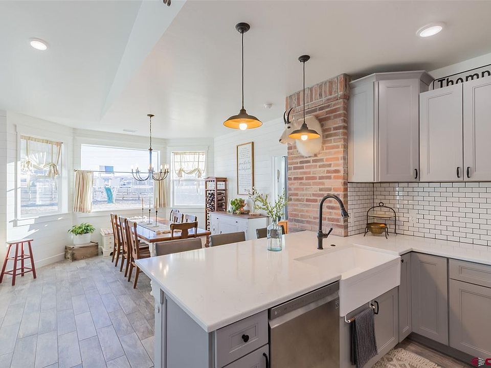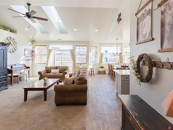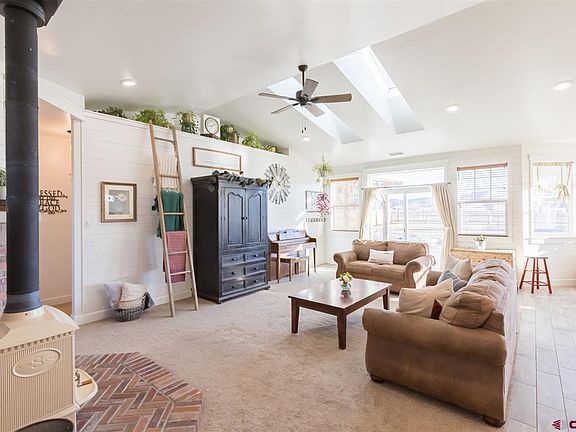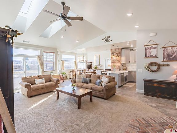 Nearly new farmhouse located south of town with big Colorado mountain views and space to make the outdoors your own! This darling home has everything you need and more boasting 4 functional bedrooms, 2 full baths, and thoughtful storage and design throughout. The stylish kitchen offers quartz countertops, soft-close cabinets and full extension drawers in addition to a pantry for extra storage. The vaulted ceilings, windows and skylights in the living room give the home a bright and open feel and the mountain views beyond are to die for. The interior custom details bring a modern farmhouse feel with function and flexibility throughout the space including shiplap, brick and a custom-made mantel surrounding a wood burning fireplace. The home is situated on just over 1 acre with an installed RV dump plus RV parking, raised garden beds, a custom pergola built from the wood of an old mine tower in Saguache, CO as well as a firepit surround built with authentic Delta brick salvaged from an old farmhouse in Montrose. Located in the coveted River's Edge Subdivision, you will be surrounded by the beautiful mountains and have easy access to both Montrose and Ridgway. Schedule your tour today because this is a home that you must see to appreciate!