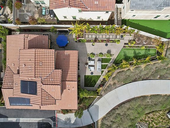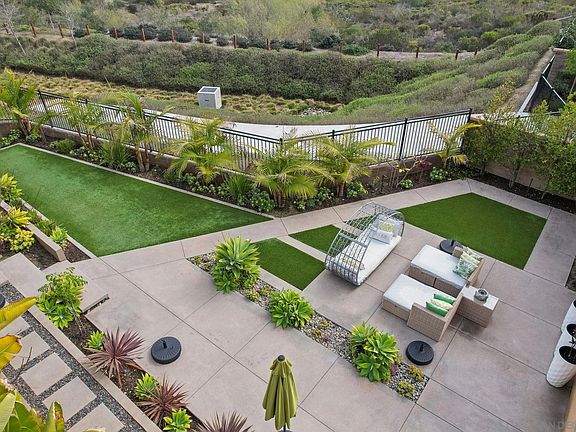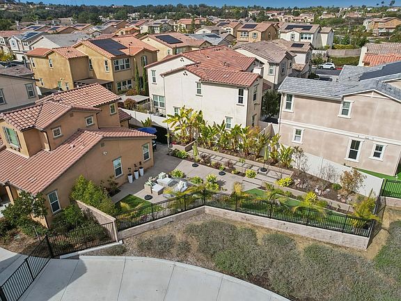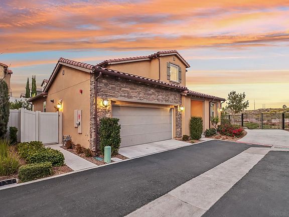 Prepare to be wowed by this newer construction detached home, nestled on a canyon in the highly sought-after enclave community of Treviso in Carlsbad! Positioned on one of the largest premium corner lots at the end of a cul-de-sac, the home offers exceptional functionality w/ modern elegance. Designed to live like a single-story w/ the primary suite, guest BR & full BA on the main level, the home features high-end LVP wide plank flooring throughout combining both style & durability. Chef's kitchen is equipped w/ white cabinetry, quartz countertops, designer backsplash, SS appliances, island w/ breakfast bar & walk-in pantry. The spacious great room offers a perfect balance for casual lounging or hosting gatherings alike w/ oversized sliding glass doors leading to the outside. With over $100K invested, this expansive backyard is a true sanctuary, featuring stunning views, a beautiful waterfall wall fountain, lush turf, landscape lighting, & a variety of fruit trees—guava, pomegranate, peach, tangerine, apricot, banana, plum, & papaya—surrounded by king palms for the perfect blend of comfort & style. Main-level primary BR features sliding glass doors, dual walk-in closets & spa-quality BA w/ dual vanities & walk-in shower. Upstairs is complete w/ add'l guest BR, 3rd full BA & large versatile loft. This Wifi Certified Smart Home includes Solar, Ring doorbell & security system, Schlage keypad entry & LED lighting. Amenities include a resort-like heated year-round pool, in ground spa, outdoor showers, covered bbq area, playgrounds & RV parking. Top-rated schools!