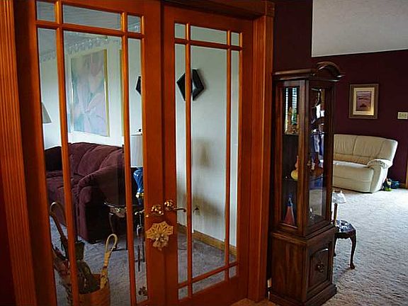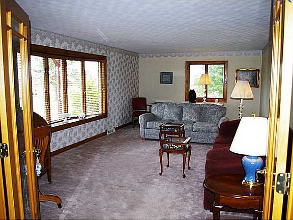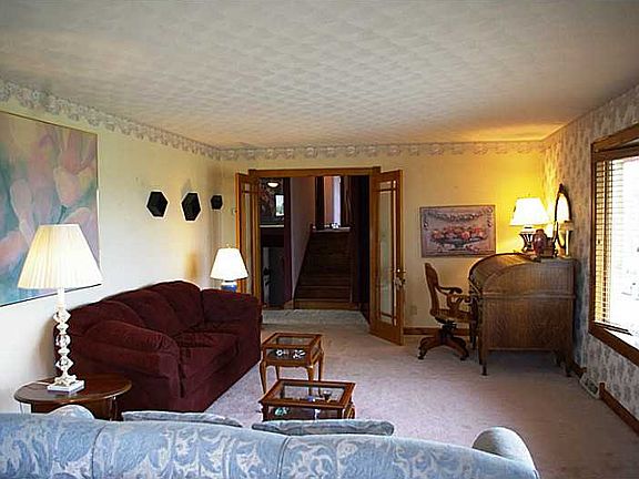 PRICE REDUCTION! Here is your Country home close to town! 5.165 acres. Large home with 3 Bedrooms, 2.5 baths, formal living room, den and family room that opens to kitchen/dining area. Vaulted ceilings and beautiful oak trim throughout. Unfinished basement could be finished with one center wall already studded. Newly stained 16X20 deck overlooks beautiful open space to the back. Plenty of room to create your backyard pond or construct a building. Furnace is 3 years old. Roof is 6 years old and withstands high winds. Kinetico water softner stays. Gas budget $57. Sewer $196. quarterly. Call today to schedule your showing!