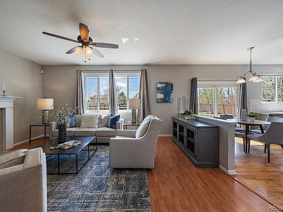 Welcome to this beautifully updated 3-bedroom, 2.5-bath home located in the desirable community of Castle Rock. This Richmond American "Brando" model boasts a spacious 2-car garage and quality construction throughout, including durable cement board siding and a concrete tile roof built to last. Step inside to find a thoughtfully redesigned interior featuring a stunning kitchen. Enjoy granite countertops, a classic white farmhouse sink, modern tile backsplash, stylish two-tone cabinetry with soft-close hinges, and stainless steel appliances. LED lighting, nickel hardware, and newer windows complete the refreshed look. On the main floor, you'll be greeted by soaring vaulted ceilings and a color palette of soft grey walls accented with crisp white trim. The open-concept layout flows seamlessly from the living room into the family room, where large windows provide abundant natural light. Relax by the cozy gas fireplace with its elegant tile surround and wood mantle, or cool off in summer with the ceiling fan. Additional main level highlights include a functional mudroom/laundry area, and convenient powder bath featuring a granite-top vanity and under-mount sink. Upstairs, all three bedrooms feature carpeting and ceiling fans. The spacious primary suite offers a 5-piece ensuite bath and a generous custom walk-in closet. A versatile loft space overlooks the main living area, ideal for a home office, playroom, or reading nook. BONUS - The unfinished basement provides 728 sq ft of potential and rough-in plumbing. There's also a crawl space perfect for extra storage. Step outside to a private, HUGE fenced backyard that backs to a scenic greenbelt and neighborhood walking trails. Your tiered patio is the ideal backdrop for summer get-togethers. Located just minutes from I-25 and Hwy 83, and within close proximity to Mesa Middle School, Flagstone Elementary, and Douglas County High School. This home is turn key and ready for you today. Don't miss looking at this GEM!