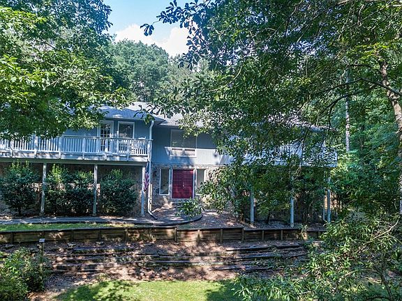 Spacious contemporary home situated on 1.61 peaceful, private, wooded acres. Main floor has 4 bedrooms 2 full and 2 half baths, and wood floors throughout. Greatroom + Den + Recreation Room (downstairs). Formal dining room + breakfast area. Renovated kitchen. Downstairs has Rec Room, garage, and storage. Nice deck overlooking private back yard with sparkling inground pool!