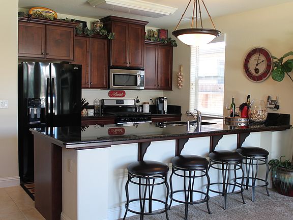 Don't miss out on this gorgeous, fully-updated home located within the highly desirable La Ventana, Granville community. Spacious open concept floor plan. The kitchen features beautiful granite countertops, stainless steel appliances, upgraded cherry cabinets, gas stove and custom shelved pantry. 18x18 tile floors in hallways, kitchen, laundry room and bathrooms. New carpet in bedrooms and family room. Updated ceiling fans in all bedrooms and family room. Beautiful crown molding in Master bedroom, and a walk-in master closet to die for! All closets feature custom shelving by California Closets. Exterior upgrades include custom Built-in BBQ, large paved patio and walkway in the spacious backyard. Custom stone work added to the face of the home. Extended driveway, and a Designer iron Gate opens up to15ft of potential RV parking paved and ready to go! The garage is fully finished and equipped with custom shelving and organization racks.