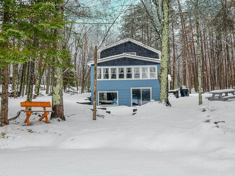 Enjoy beautiful Virgin Lake.You can look out any one of the lakeside windows in the amazing living room!This home is the perfect spot for everything people love about Northern WI, the lakes, the trails, the snowmobiles and wildlife!Private and pristine and plenty of room to move around!There is one bedroom on the main floor with a full bathroom, a lakeside family room, actual dining room and an eat in kitchen with new cabinetry, a new backsplash, appliances and paint and flooring.There are three additional bedrooms upstairs with a 2nd full bathroom!In the unfinished basement you have enough room to finish some additional living space (if you choose) and sliding glass doors that will take you out to the lake and your pristine level 129 feet of sand frontage! The shed is fantastic to use for your yard and garden tools and there is plenty of room for a future garage. All of this with a circle drive on a lot FACING WEST with a 276-acre lake JUST south of Three Lakes; the best little town!