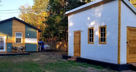 Brand new Cabin and Shed with city approval for replacement of second home to be built only 34" from water (2 houses, 1 lot). Current Cabin boasts 10' Cedar ceilings, electric fireplace, wood floors, quartz counter tops, king bed w storage, fold-up bunk room office, breakfast bar, retractable ceiling fans and walk-in tile shower. All new appliances, utilities, metal roof, windows, siding, etc! New Shed and Cedar Deck to accompany the level south facing lake lot on a dead end road. Build your 2nd Cabin quick and easy with all utilities roughed and waiting.