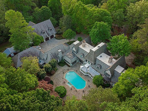 Situated on a secluded hilltop this property encompasses a US Open DecoTurf surface, lit tennis court, cabana, outdoor kitchen, pool, English gardens, 2 stall barn, 2-bedroom carriage house, 5 car garage with single hydraulic lift system with capacity for 10 cars. The French inspired gated custom estate sits on almost 10 acres in the heart of Sandy Springs was originally constructed for Atlanta Royalty and features stone construction, slate roof and copper gutters, excessive molding, illuminated marble flooring, mahogany wardrobes, stone hearths and intricate iron work.