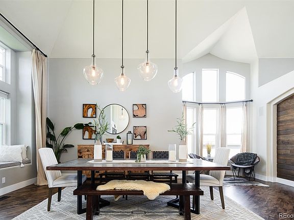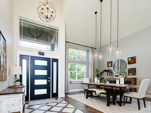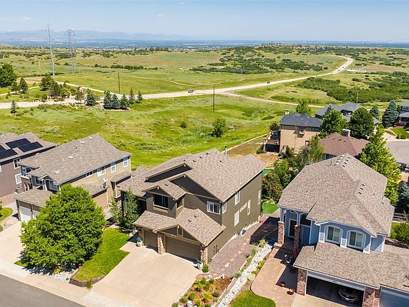 Welcome to this stunning two-story home with a walk-out basement & mountain views in Castle Pines—where space, style, and scenery converge. With 6 bedrooms, 3.5 baths, a 3-car garage, and over 4,000 square feet of living space, this home offers the perfect blend of comfort and elegance. Step into a grand foyer that opens to soaring 18-foot ceilings and a bright, open-concept floor plan. To your left, a spacious formal dining room sets the stage for memorable gatherings, while the great room features dramatic floor-to-ceiling windows and a cozy fireplace. The chef’s kitchen boasts granite countertops, a large island, ample cabinetry, and a charming breakfast nook that overlooks the expansive deck and serene open space with mountain views beyond. The main-floor primary suite is a true retreat with a five-piece en-suite bath and a generous walk-in closet. A powder bath and laundry room complete the main level. Upstairs, you’ll find three additional bedrooms—one with its own private balcony—a full bath, and a versatile loft perfect for a home office, media room, or play space. The finished walk-out basement includes two more sizable bedrooms, a full bath, and a spacious family room complete with a kitchenette—ideal for entertaining or multi-generational living. Step outside to the lower-level patio and enjoy sweeping views, mature landscaping, and a relaxing hot tub. Located near scenic trails, Coyote Ridge Park, and with easy access to Castle Rock and Lone Tree, this home combines natural beauty with suburban convenience. Don’t miss your chance to own this exceptional property in one of Castle Pines’ most sought-after communities with coveted neighborhood pool.