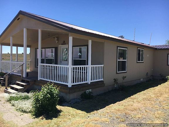 This is the place you need to be looking. Just 6 miles West of town on the North side of the highway. This home is a 2006 MF Home with 3 bedrooms and 2 baths. The exterior has a newer metal roof and wood siding. They have also recently added a large double car garage/shop with concrete floor, insulated walls, overhead remote doors and power. There is also a breezeway added between the home and shop. There is also a small storage shed/workshop with power. The interior of the home is super nice and clean and ready for you to move into. 3 bed 2 bath, large kitchen with hickory cabinets, fridge, dishwasher, range and microwave. Vaulted ceilings in the home and it is heated with an electric heat pump, forced air. Air conditioning as well! The home also is on a septic and well, great water!! The property is fenced for grazing cattle or having a few horses, the home is fenced outside of the main fencing area. The home is about a half mile of the highway. THIS PROPERTY IS ON THE NORTH SIDE OF HIGHWAY 20 WEST!! YES, Very Hard To Find Property On This Side Of The Road!! AMAZING VIEWS! PEACE A QUIET ABOUND!