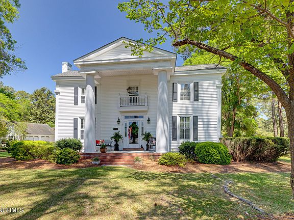 This picturesque Greek Revival style home was built in 1868 per seller. A stunning custom built home by Mr Joe Carr, this home has become a part of history. The three bedroom/ 2 bath home offers a perfect blend of classic charm and modern amenities. Step inside and enjoy a grand foyer which leads to a downstairs master suite on your right. On your left, enjoy a large 30x 15 family room with fireplace and enough space for larger families. Behind the family room you will enjoy meals in the open dining and kitchen areas complete with beautiful hardwood flooring and painted knotty pine walls. A large laundry area sits off the kitchen and features beautiful glass front cabinetry,& built in sink. A side door