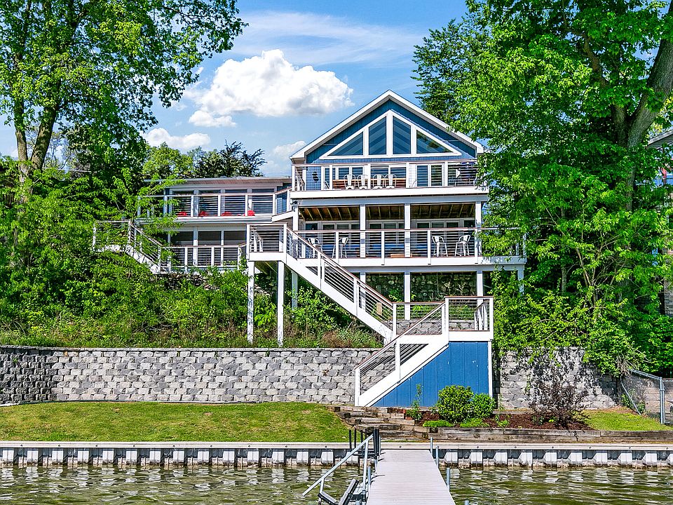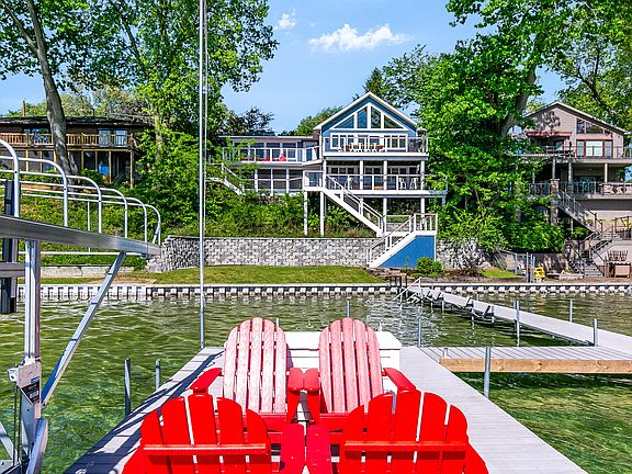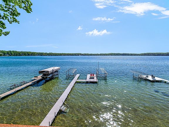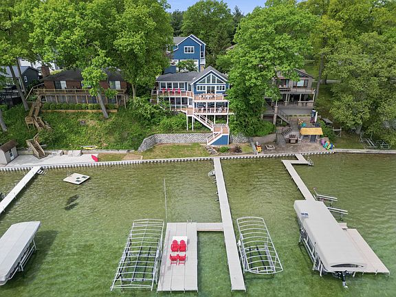 The perfect family home on the perfect lake. Klinger Lake, an 830 acre, spring fed, all sports lake—where unforgettable water views, crystal-clear water, and year-round fun await! This spacious and beautifully updated walk-out ranch is designed for lakeside living. Over 3000 sq ft of living space, with 4 bedrooms and a sleeping porch for extra guests or a summer nap, 2.5 baths. Main floor master with ensuite bathroom with a steam shower, and slider to private hot tub and shower area. Updates include kitchen cabinets, quartz counter tops and appliances. New flooring, trim, wood doors and fresh paint throughout. The kitchen and dining area have vaulted ceilings and an open layout-bright and airy! AND OH, THAT STUNNING VIEW! Massive 40X60 garage included to park cars/toys/boats or for games. This property offers the perfect location, space and quality. 2.5 hours from Chicago/Detroit; 3 hours from Indy. Call today for your private showing!