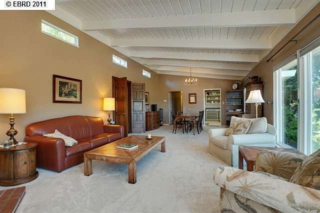 The Piedmont Side of Montclair is a great location for people who enjoy walking. Whether just around the neighborhood, to Montclair Village or the Farmers Market on Sunday, it's all sl close. Major freeway arteries are close also.This home is very special in that it is located on a private laneway off of a cul-de-sac so it enjoys maximum privacy from street traffic. You get a true sense of peace and tranquility when you drive up the laneway. The covered front porch is a great place to enjoy the wonderful setting, serenity and front garden. At the back of the house and level-out from the rumpus room is a huge patio that is bathed in sunshine a good part of the day. This mid century contemporary has an open living and dining area with a high wood beam ceiling painted white, clerestory windows and multiple picture windows. There are hardwood floors under the relatively new wall to wall carpeting. Solid, mature, mahogany paneled doors (recycled) have been added to the entrance to the living and dining area for a rich, interesting and creative look. The kitchen is modestly updated with a cozy breakfast room. There are two bedrooms, a full bath and inside access to the garage on this level with only a couple of steps to the entrance. The lower level has a very spacious rumpus/hobby/multi-purpose room with bamboo wood floors and French doors that lead out to the large spacious patio and garden great for large parties and a play area for children. There are plenty of gardening areas for those with a green thumb. The third bedroom and second bath have been converted to studio in-law apartment with separate entrance within which there is a large closet with second laundry set-up. If one wished to do so, an internal connecting door way could be re-established. This home has a lot to offer and is in a very sought after location. Thermopane windows for energy efficiency. The cast iron sewer lateral that has been inspected and is in good condition. Neighborhood Description Nice; safe; lots of trees; 2 blocks to village. Farmer market every Sunday in the village.