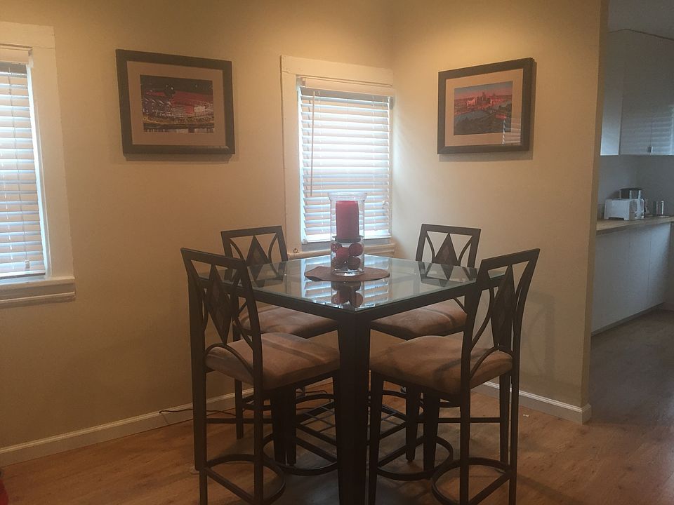 Newly renovated townhome style apartment. First floor consists of large living area, newly renovated kitchen, and dining area; laminate flooring. Second floor consists of 2 large bedrooms and 1 newly renovated bathroom. The basement contains a washer and dryer and is great for storage. The backyard courtyard is fenced and great for dogs. This apartment allows dogs and cats; all breeds allowed. Walking distance to Oakmont Bakery and great Oakmont restaurants. Features: central air, gas heat, electric stove, porch off bedroom, fenced in courtyard, washer and dryer, dishwasher Tenant pays electric, gas, water, trash/sewage.