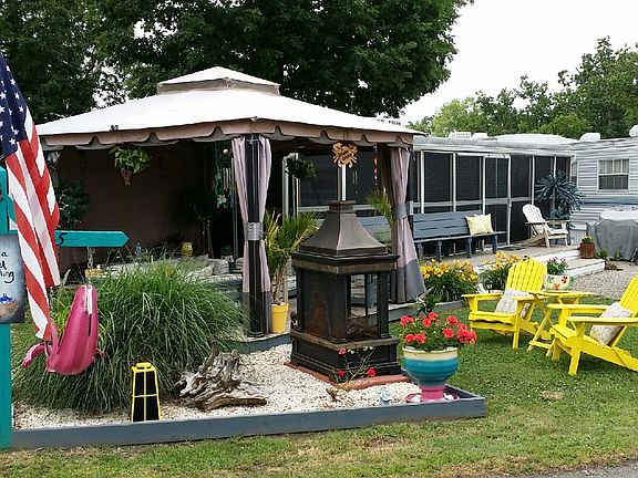 The Urbanna Cabanna is for sale! This is a beautiful 3 bedroom, 39' park model at the award winning Bethpage Camp Resort. This vacation home is located near the point on Oak #15 across from the bath house. This property boasts 2 refrigerators, 2 ice makers, sleeps, 8-10 comfortably. 12x35 air conditioned in closed florida room with 3rd bedroom, family room with brand new furniture and 48in flat screen TV. One of a kind, surfboard bar!! A cozy outdoor cabanna with rare seating, this area is great for relaxing or entertaining! New driveway with plenty of parking, shed, 2007 lifted, custom club car is included. Turn the key to your dream getaway! All 2015 fees paid including a dry storage slip