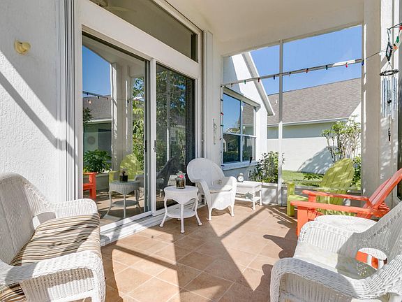 Come LIVE a wonderful lifestyle in this active 55+ gated community of Compass Pointe in West Melbourne! Centrally located with many amenities to offer! You will enjoy this well-maintained home, and the floor plan provides excellent space, built-in niches, high volume ceilings in the large kitchen and family room that makes the room feel expansive and open. The trussed covered porch offers high ceilings and is spacious. Pavers were recently added off the lanai to provide room for BBQ grilling and extra seating. The master suite offers double sinks, a garden tub & a walk- in shower and built-ins in the master closet. A new hurricane rated large door just installed 3/18, laminate flooring added in 2012, plantation shutters, outside pavers 2013, hurricane shutters & landscape curbing.