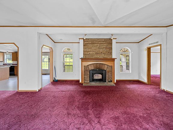 What a find! Three bedroom, two bath home with an attached three car garage and a woodshed sitting on 23.54+/- acres. A private road services three homes, this is the second home on the right. Very private property with open fields and brook frontage on one side. If you are looking for privacy and wildlife but within minutes of town, this is the one for you! This home is large with cathedral ceilings, fireplace with wood-stove insert. First floor living with a primary bedroom and bath, two additional bedrooms with another bath, laundry/mudroom entrance and a front deck overlooking the fields/lawn area. Please have pre-qualification ready before viewing. Neighbor has deeded well rights on this property at land above. Not the well that services this property.