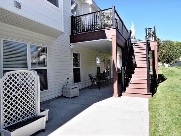 Villa in part B (30% larger units) Original owner loaded up villa-vaults, bay windows, open great room villa. Main floor offers separate 2 bedroom/2 full bath. 2nd bedroom is currently den with custom murphy bed wall system that stays. Main floor living with laundry, white 42 cabinets Largest low maint. deck and largest patio in complex. Lower level boasts 2nd fireplace, 3rd full bath and 3rd spacious bedroom, bar and walk out with lots of large windows. Available for late Nov. closing. Owner winters in south, very lightly lived in. Recently professionally landscaped.