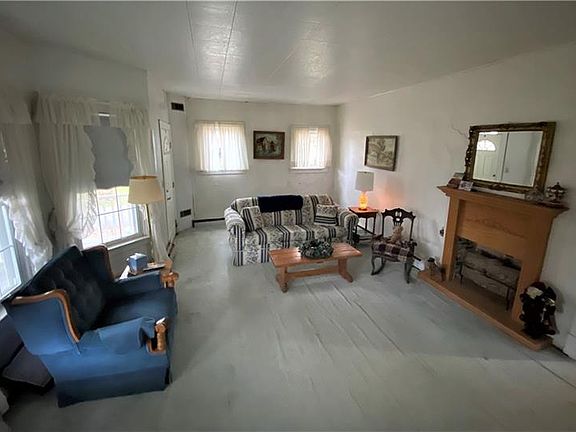 Quaint Victorian on 3.642 Acres of Land! Fabulous Covered Front Porch! Spacious Living Room with High Ceilings, Beautiful Bow Windows & Pretty Decorative Log Fireplace with Wood Surround & Mantle! Perfect Sized Dining Room with Another Set of Bow Windows, High Ceilings and Ceiling Fan! Retro Eat in Kitchen with Metal Cabinets and Counters, Gas Stove & Refrigerator! Relaxing Covered Back Porch Overlooking the Beauty of the Land! 3 Oversized Bedrooms! 2nd Bedroom has a Walk in Closet and Door to Access the Attic. Full Bath with Claw Foot Tub, Nice Vanity & Medicine Cabinet! 2 Room Floored Attic with Windows Provides Many Options or Great Storage! Full Basement with Washer & Dryer, Long Worktable and some built in Shelving. House is Being Sold in AS-IS Condition. Needs Work.
