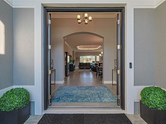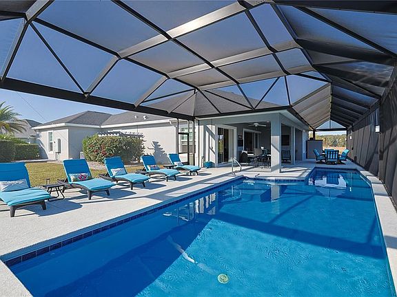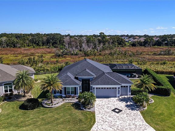 If you're looking for privacy and elegance in The Villages, this four bedroom, three bath Avalon model checks all the boxes. Perfectly located in the highly desirable "The Preserve" neighborhood, this meticulously maintained home abuts a protected natural wildlife preserve with unobstructed views across the expansive lanai. The BOND was PAID for this 2019 home with upgraded appliances, a brand-new pool pump and water softener. Step inside to see the open floor plan with 10–14-foot ceilings. Tray ceilings and recessed lighting is abundant throughout the home. The formal dining area is large enough to seat a party of 1 tray ceiling with a fan above the entire room. The first of two Primary bedrooms feature a huge ensuite bathroom with a large walk-in shower, walk in closet and a separate linen closet. The dual sink area also has seating to get ready for your day. There is also a tray ceiling and ceiling fan. The second primary bedroom is very spacious. The attached en-suite bathroom has a walk-in shower, a tray ceiling with fan as well as a seating area with lighting for reading your favorite book. The third bedroom has a wide closet and also has an attached ensuite bathroom. There is a professional, soundproof recording studio for music production or podcast creation. It can be easily converted to a fourth bedroom or large office. The two-car plus golf cart garage is wide and deep and features "The Magic Stairs" automatic stairs leading up to the attic with flooring and lighting. There is a 12,000-Watt dual-fuel generator with a separate circuit breaker panel. The generator has only been used with propane fuel. There is also a Ranchio irrigation system that is programmable through your smart phone. The lanai is truly amazing. This is why people move to Florida. Beautiful views of the protected preserve area extend for 180 degrees across the lanai. The heated salt-water pool has a shallow area for chairs and kids as well as a long "lap pool" section. There are five different areas for seating on the lanai, some covered and some screened. This is a great place to entertain or just revel in the serenity of the space. The Preserve is a gorgeous area in The Villages, and this home has one of the best views in The Preserve. Schedule your showing today!