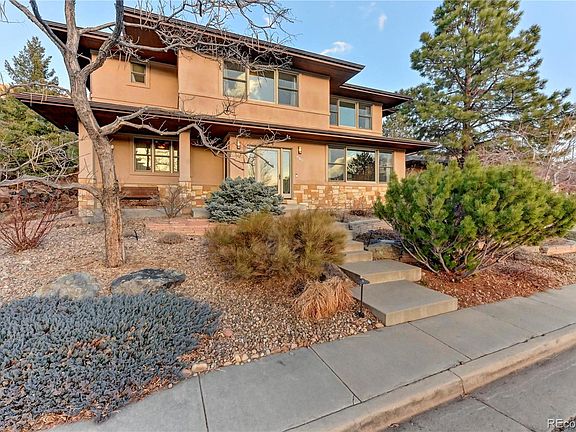 Welcome to a custom-built beauty in Mesa Meadows! Built by Mark Manley and designed by Sarah Susanka, this home was featured in the first chapter of Sarah Susanka's fourth book, Home by Design, and was designed to blend into its gorgeous mountain setting. The hipped roof with large projecting overhangs, horizontal trim bands and two-story form add a sense of the past to what is very contemporary detailing. The interior is open, spacious, and filled with light and well placed windows through what Sarah refers to as a "Sequence of Places", rather than a typical room to room layout. Throughout the home, ceilings and soffits differentiate one activity place from another, leaving open views through the house and simultaneously providing a sense of shelter and intimacy. White oak hardwood floors, 3 panel solid wood craftsman style interior doors, custom designed stained-glass door and sidelights, and custom hemlock wood trim throughout the house give this home a craftsman style vibe that is truly unique. The kitchen offers Schroll custom cabinets, a massive granite island to entertain guests and family. The main floor living rooms offers spectacular views from every seat. Upstairs floor plan was custom designed to take advantage of the views. With a master suite oasis that opens to a rooftop deck with incredible views, you may never leave. Two other well-appointed bedrooms all w/ views, a Jack and Jill bathroom and a private office with French doors. The front foyer has a separate door to keep the cold air from entering the main part of the house when you open the front door. The back breezeway also has a separate door to keep out car exhaust fumes. The owner had the home moved forward on the lot to allow for an expansive backyard. Nine panel 2.925 KW Solar Array, owned. Mesa Meadows neighborhood offers access to wonderful parks within walking distance. Close to hiking/biking and running trails and walkable to all that downtown Golden.
