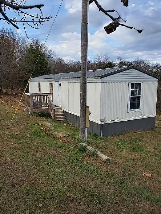 PLEASE DO NOT DISTURB CURRENT RENTERS: This Property is rented until JUNE 1st. Property extends to bottom of valley: 8 MILES TO BRANSON: 14x52 remodeled mobile. New roof, carpet, hickory kitchen cabinets 3/4 laminated flooring in living room. Central air, public water with septic. TWO car garage. Country living at its best. 5 PLUS ACRES WITH THE VIEW: remodeled bathroom with tile floors in kitchen, bath and laundry room. new arched interior doors. Give me a call if interested Rick @ 417-593-0617