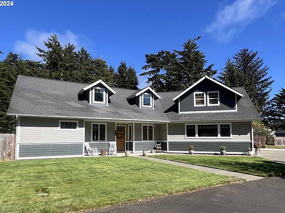 Beautiful 3 bedroom, 3 1/2 bathroom home with 2 den/office spaces & partial Siuslaw River views. Primary bedroom features coffered ceilings, his & her closets, linen closet and an updated attached bathroom with double sinks, soaking tub & walk-in shower. Step into the open living room with high vaulted ceilings, a gas fireplace & solid maple wood floors throughout. The updated kitchen boasts an eat bar, double built-in ovens, newer Wolf range & hood, large copper sink & plenty of storage space with the walk-in pantry. Don't miss the upper media room that features a projector and entertainment drop-down screen as well as a sink bar with a mini fridge. Speaker system is installed throughout home. French doors lead out to the covered 10' x 20' back patio and fenced backyard with storage shed, fire pit & koi pond.