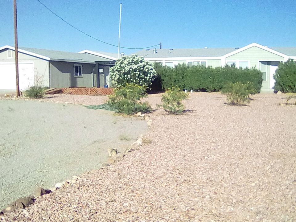 4 car oversized detached garage 26x40,26x60 outbuilding built on a thick concrete slab,use as rec room,shop,etc...... Front landscaped with desert rocks,connected to Mohave County Water System,Situated on paved road,1 acre lot. Laminate wood floor in shop,house carpet and laminate. Trane ac/,heat pump,2, years old. Shop has own ac/,heater. Plenty of room for RV,Boats,etc.. Priced to sell,as the home does need some shrubs trimmed,small section of floors in kitchen and shop need repair. Over 250,000 invested In process of restraining deck,and clearing garage.Thanks for looking..Make an offer.... Contact seller at rustyboy777@hotmail.com or Call 310-251-8284