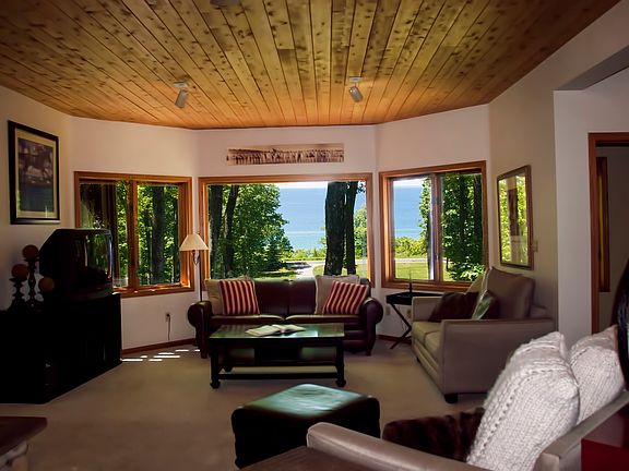 Beautiful Lake Michigan views from this four bedroom, three and a half bath custom built home. Located south of Good Hart, the house features a geo-thermal heating system, wood burning fireplace, lots of windows, attached three-car garage, paved drive and many extras.