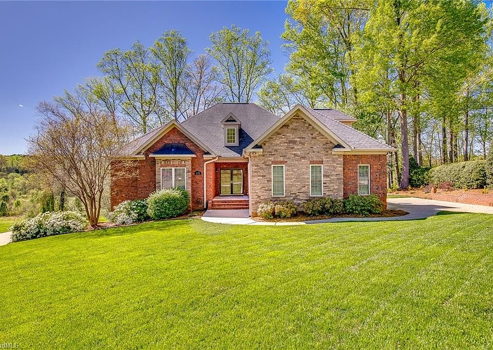 This custom build boasts a 4 car garage, (2 on main level, 2 in basement), ONE LEVEL living and is conveniently located at the Forsyth county line off of 150, minutes from downtown Winston Salem, shopping, restaurants, hospitals & more. Entertain in your Great Room furnished w/wet bar that opens up to a trek deck overlooking a wooded lot and your very own custom built pond. Equipped w/ a full irrigation system, 2 driveways & more. Full unfinished basement for easy expansion. Offering 1 yr. home warranty!