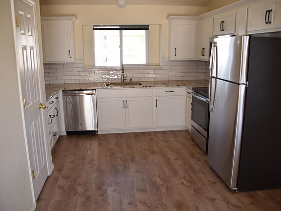 Comfortable newly remodeled home on the West side near downtown (80905) Colorado Springs, with new deck, new LVP (luxury vinyl plank) floor, new A/C, newly remodeled kitchen with all new appliances , newly painted inside and outside. House is a split-level design overlooking the city. Great, spacious floor plan. House is in cul-de-sac on a quiet street with very little traffic. House has high vaulted ceilings on the main floor (great room, kitchen, master bedroom with private access to the upper deck as well as the 2nd bedroom), and very large, partially unfinished basement for storage. The house has many windows and good air circulation, ceiling fans in all rooms, and a large kitchen. Master bedroom and great room walk out onto over-sized deck with a fantastic view. House is within walking distance of Downtown and Colorado College in quiet neighborhood with many trees, trails and parks. Within a couple of minutes of shopping, including groceries. 10 minutes to Garden of the Gods. Walk-out basement (from downstairs bedroom) to fenced-in, fully landscaped, low maintenance yard. In addition to the over-sized one car garage, there is an off the street, attached, private parking pad. Very clean house is available at beginning of May. Will be able to show it now. Won't last long! Master bedroom (15 x 16); Bedroom2 (12 x 13); Bedroom3--downstairs (12 x 12) Great room (20 x 15) Kitchen (13 x 14)
