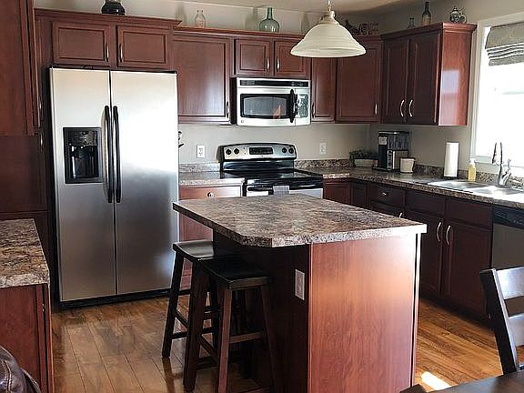 Stunning raised ranch home is in immaculate condition, and move-in ready!!! Located on 2.13 acres, this house has 3 bedrooms, 2 full baths. The Master Suite includes a walk in closet, tray ceiling and full bath with tub and shower. The second bedroom has a walk in closet. Special features include a pellet stove for dual heat source, central air, full yard sprinkler system, newly stained back deck, 16x20 shed, custom designed fire pit area and landscaping by professionals. There is a two car, oversized garage with built-in cubbies for additional storage. This house includes an utility room, storage room, and finished walk out basement.